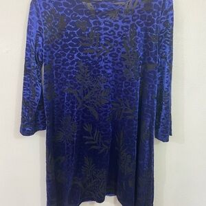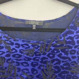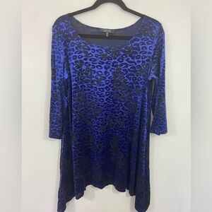 Lbisse Tunic Top Velvet Burnout Cheetah Print Sz XL Purple Black Asymmetric Hem