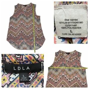 LDLA Printed Split Neck Sleeveless High Low Blouse Women's Size Large