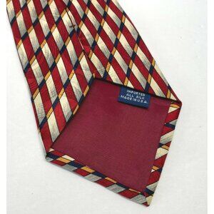 Le Bils Mens Silk Neck Tie Red & Gold Diagonal Striped Geometric Made in USA