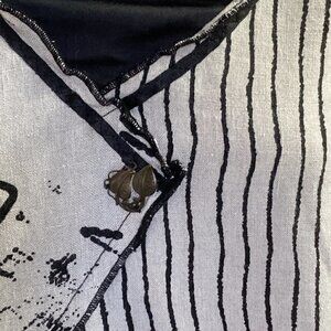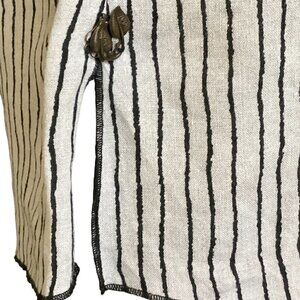 The Le Blanc Mouton Linen Blend BOHO Artsy Mixed Media Tunic Top in size M/L is a stylish and versatile piece perfect for casual or business occasions. Made with a linen blend fabric, this top features a relaxed fit with short cap sleeves and a pullover closure. The multicolor design with bronze charms adds a touch of artistry, while the lightweight and breathable material makes it ideal for the summer and spring seasons. Hand wash only to maintain its quality, this tunic top from Canada is a must-have for your coastal grandma or bohemian-inspired wardrobe.