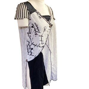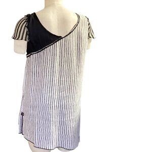 Le Blanc Mouton Linen Blend BOHO Artsy Mixed Media Tunic Top M/L 148A