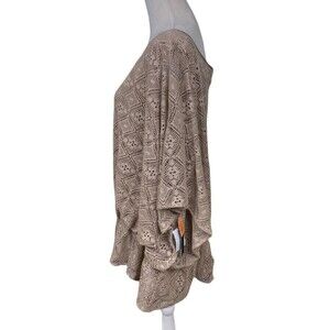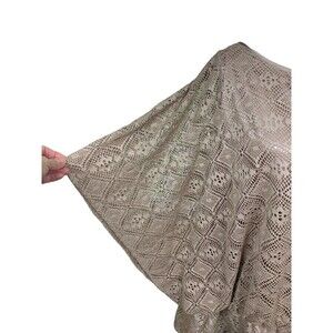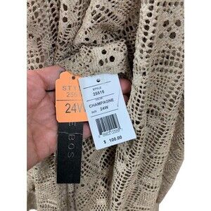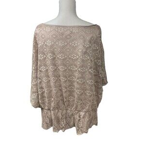 Le Bos Elegant Blouse Metallic Mesh Overlay Elastic Peplum Hem Champagne Sz 24W