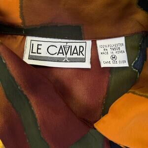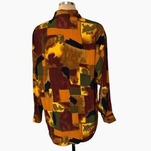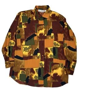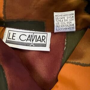Le Caviar Blouse Womens Medium Collared Button Up Top Brown Green Abstract 90s