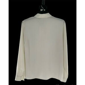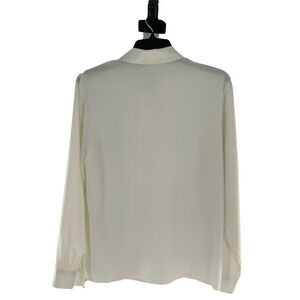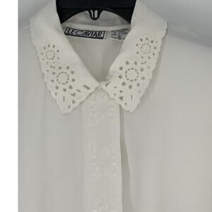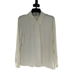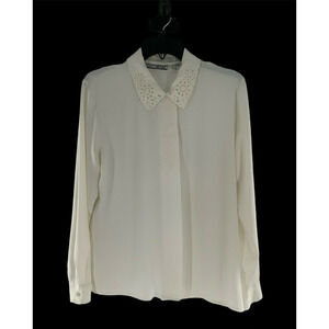 Le Caviar Vintage Blouse Women's Size 8 Long Sleeves Embroidered Collar Hidden Front Button White Top