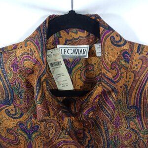 Le Caviar Womens Button Down Shirt Size 8 Shoulder Pads Blouse Artsy Retro