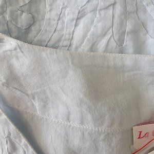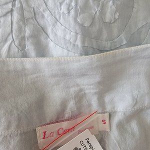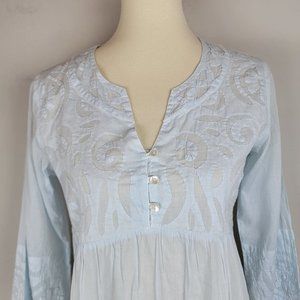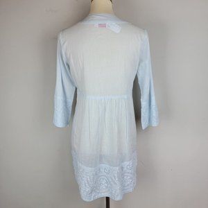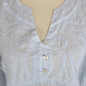 Le Cera Hand Sewed Blue Floral Patchwork Button Beach Cover Up Sheer Tunic Top S
