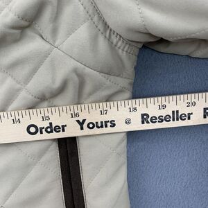 Features: Diamond quilted exterior; full zip front; two front zip hand pockets; curved hem; lightweight insulated layering piece
