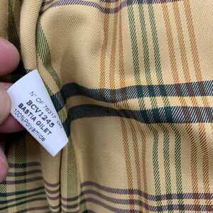 Lining: Plaid/tartan lining in yellow, green, and brown tones
