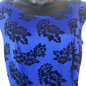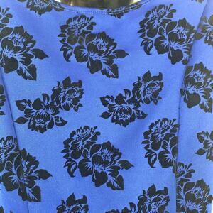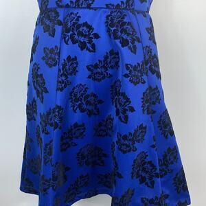 Le Chateau Cobalt Blue Dress with Black Velvet flowers A Line size M