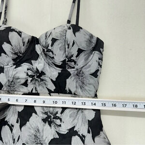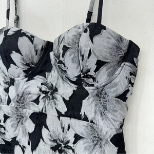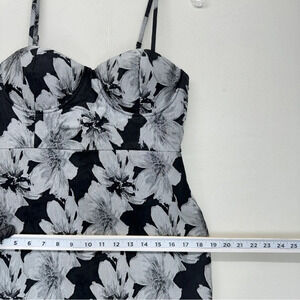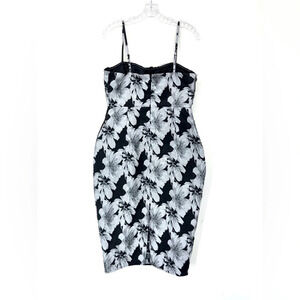 Le Chateau Women Floral Dress Jacquard Black Small Midi Spaghetti Strap Bodycon