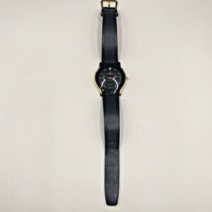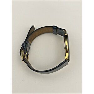 Le Chateau Womens Diamond 18k Gold Plated Watch Black Leather New Battery Works