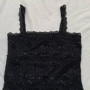 Le Chateau Y2K Black Lace Sequin Straight Neckline Tank Top