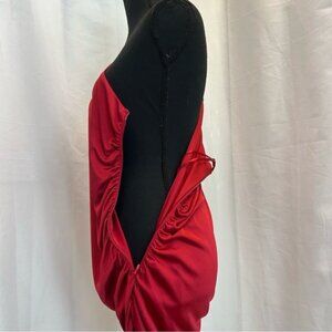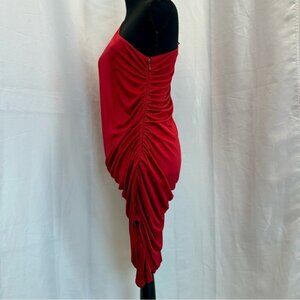Le Chateau red one shoulder draped ruched web sleeve mini cocktail dress M