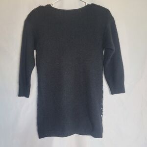 Le Chois VTG Silk/Angora/Wool Blend Black Sequin Beaded 3/4 Sleeve Sweater Small