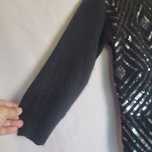 Le Chois Vintage Black Sequin and Beaded 3/4 Sleeve Sweater. Women's size small. Silk/ Angora/ Wool blend. Does have shoulder pads which can be easily removed. In excellent preowned condition. Measurements are approximate and are shown in photos.