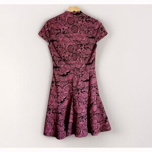 Le Château Pink Black Floral Jacquard Fit & Flare Dress M Baroque Parisian Chic