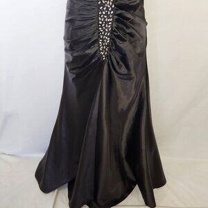 Le Cirque Women's Size M Black Rhinestone Embellished Ruched Evening Gown Formal