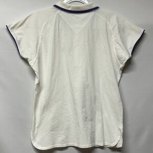 Color & Design: The shirt is predominantly white with contrasting blue tipping on the collar and sleeve cuffs, adding a touch of sporty elegance.