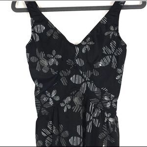 Le Cove Swimsuit Size 12 One Piece Skirt Black Gray White Floral Padded Bra.