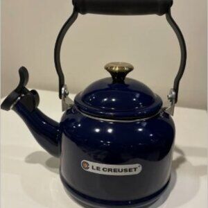 Le Creuset 1.1 Quart Enamel on Steel Demi Tea Kettle GOLD knob - Indigo