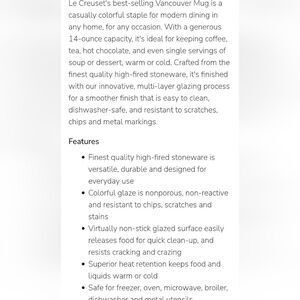 Brighten your table with this Le Creuset mug. Perfect for any drink.