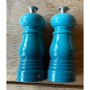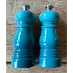 Le Creuset 4.33 in Petite Salt And Pepper Mill Set Caribbean Blue NEW NIB