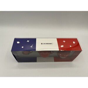 Le Creuset Set of 3 Miniature Ornaments (one tea pot, one dutch oven, and one mug) in color Red Cerise. New in box. Ornaments measure approximately 2 x 2 inches.
