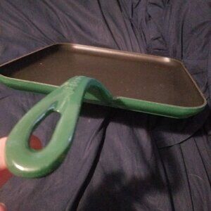 Le Creuset Enameled Cast Iron RARE GREEN 11" Square Griddle Pancake Skillet Pan