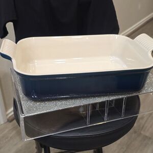 Enhance your kitchen with this stylish blue and white baking dish. Perfect for baking and serving your favorite dishes.
