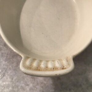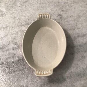 Item: Stoneware oval au gratin/baking dish with dual ribbed side handles