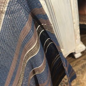 Le Dalmas Made in Italy Striped Blue and Brown Sheer True Wrap Women's Maxi