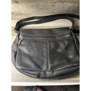 Le Donne Brown Flap Over Leather Shoulder Bag Double Straps