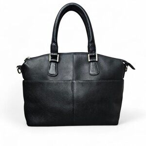 Le Donne Leather Esperanto Satchel Vaquetta Leather Black Handbag Medium