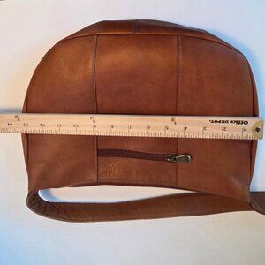 This tan colored bag is both stylish and functional. Between a small bag and a large tote bag there is the humble Hobo. This bag has all you need. It features a soft, supple leather – authentic Colombian Vaquetta - with a smooth texture that becomes more beautiful in time. It has a simple shape that’s not too big and bulky but is stream-lined and spacious. There are 3 outer slip pockets in front so you can keep your cell phone close by and easy to find. This lightweight bag has an adjustable strap to ensure a comfortable fit. The inside is fully lined and has a zippered pocket and one open slip pocket. The bag has a zippered closure. It measures approximately13 x 9 x 3 inches. This bag has been gently worn with just a smidge of fading around the area where the strap meets the bag. The leather itself has some dark nuances that could be in the grain overall. It does not detract from the beauty of the bag.