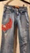 Awesome eagle bird appliqué distressed flare bottom jeans fromBrazil