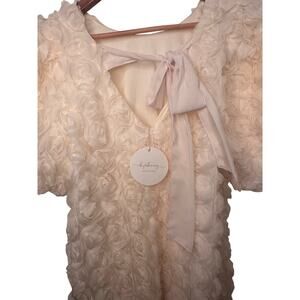 Le February Women’s Large Ivory 3D Rosette Mini Dress Puff Sleeve Bow Back NWT