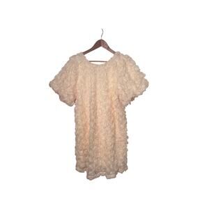 Elevate your style with this Le February Size Large ivory mini dress, featuring a gorgeous 3D rosette floral texture that makes it truly unique. The dress has dramatic puff short sleeves, a chic shift silhouette, and a feminine bow tie detail at the back. Perfect for cocktail parties, weddings, or any special event, this piece blends modern elegance with playful romance. Brand new with tags and never worn, this boutique-style dress is a standout addition to any wardrobe.