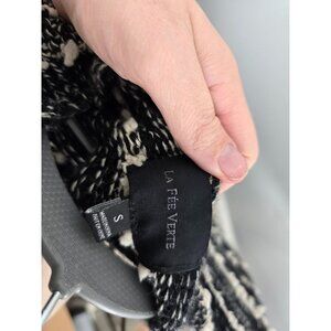 Le Fee Verte Cardigan Women's S Black White Popcorn Sweater Anthropologie Fringe