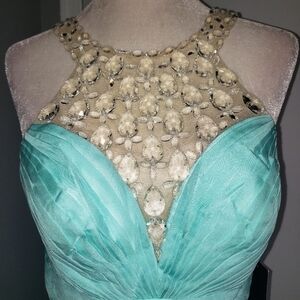 Stunning mint green gown.