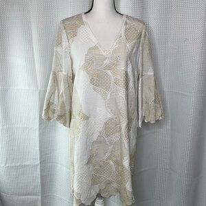 Le Gali Albany Dress Embroidered Scalloped Sleeves V-Neck Size Medium