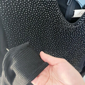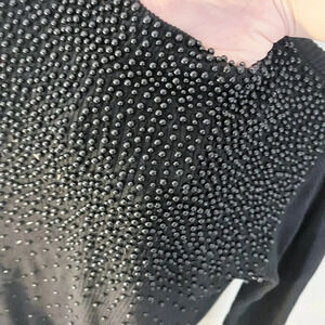 Le Gary Black Beaded Sweater Women's Medium Knit Mock Neck Long Sleeve Italy