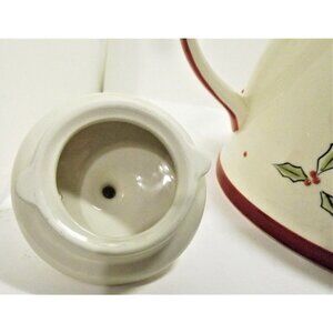 Lovely domed teapot with Santa on each side, handle and lid are trimmed in red. Holly berries are e-dimensional.