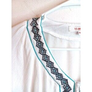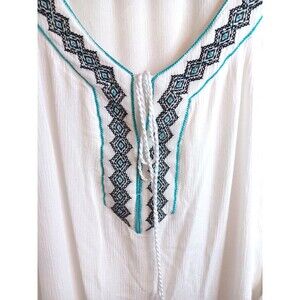 Le Grenier V Neck Tunic Top Womens XXL White Blue Boho Langenlook Beach Coverup