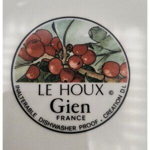 This vintage Le Houx Gien France ceramic sandwich tray showcases intricate holly and berry artwork. Crafted with timeless elegance, it reflects classic French ceramic artistry.