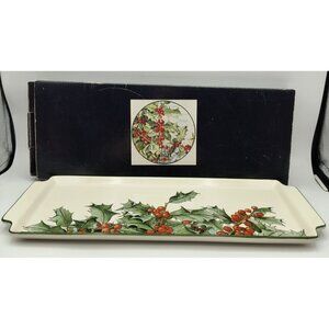 Le Houx Gien France Ceramic Sandwich Tray Holly Berry Design 15" X 6" Ivory & Gr