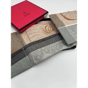 Le Jacquard Francais 100% Linen Tablecloth "Moon" Silver Brown 47”x47"NIB