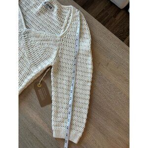 Le Jean NWT Linen Crochet Top in Sand Size 4 Half Sleeve Sweetheart Neckline. No flaws!!