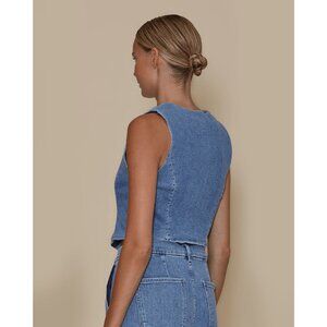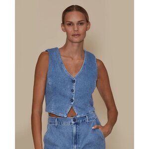 Description from retailer: The Ella waistcoat cut from the denim blended with the perfect amount of comfort stretch for an amazing fit. Cotton lined with navy horn buttons and a classic blue wash. Made in Los Angeles