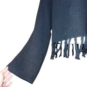 Le Lis Black Knit Fringe Crop Sweater Sz Small Long Bell Bottom Sleeves99