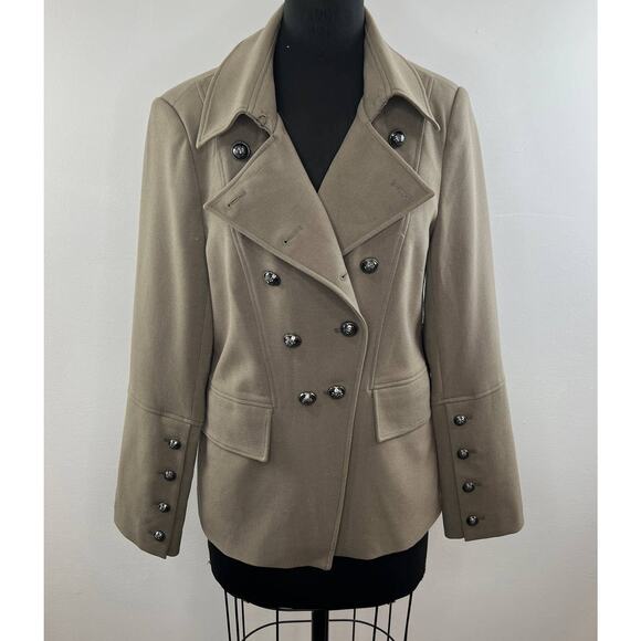 Le Lis Blanc Beige Long Sleeve Double Breasted Notched Military Jacket Sz EU 44
